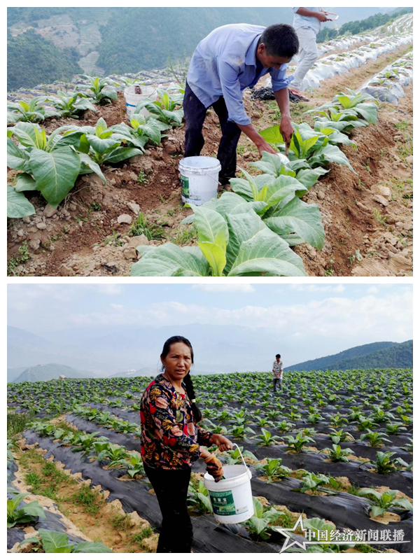 煙農(nóng)正在田間為移栽后的煙草施肥(詹少波供圖)