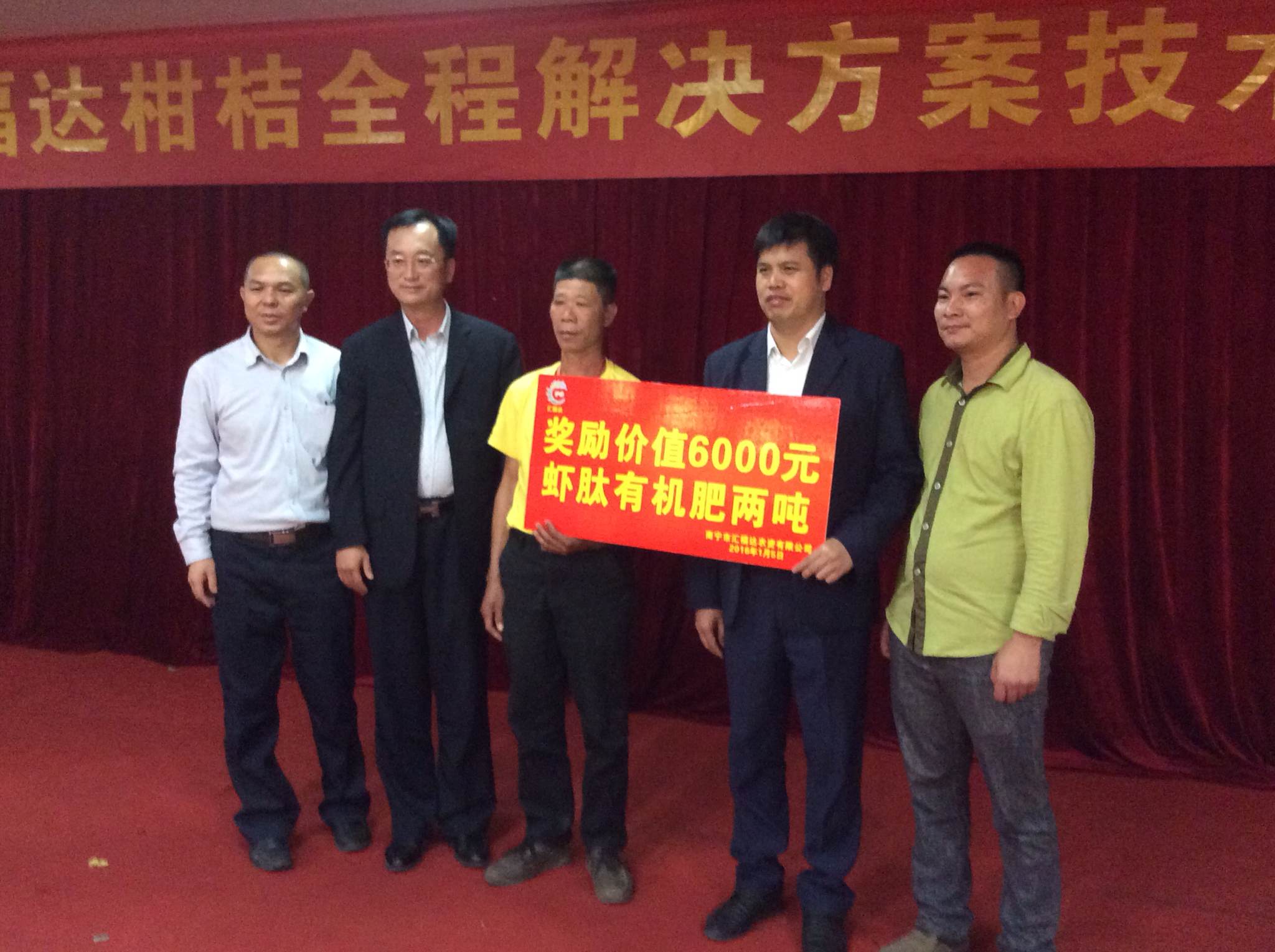2016年1月5日到6日,我司廣西經(jīng)銷商——廣西南寧市匯福達(dá)農(nóng)資有限公司,在武鳴大酒店舉辦了為期兩天蝦肽肥柑橘種植技術(shù)交流會(huì)。