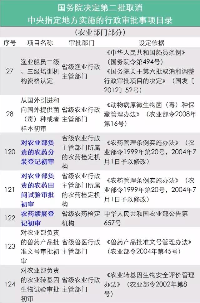 圖為 國務院決定第二批取消中央指定地方實施的行政審批事項目錄(農業(yè)部門部分)