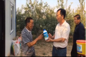 圖為 我司總經(jīng)理王榮輝為張老送來蝦肽系列肥料