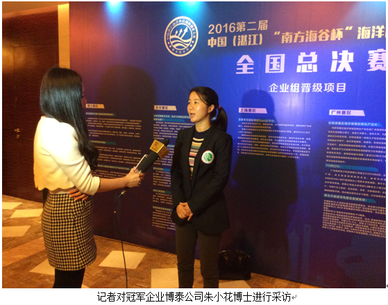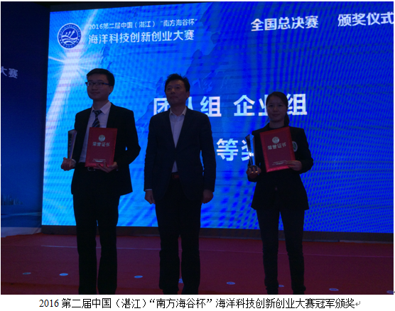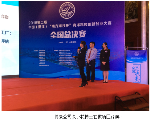 熱烈祝賀博泰公司榮獲2016第二屆中國(guó)(湛江)“南方海谷杯”海洋科技創(chuàng)新創(chuàng)業(yè)大賽冠軍