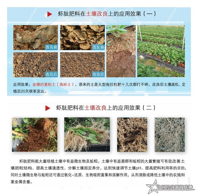 詹少波大體介紹了公司的情況之后,指著貨架上一款名為“蝦肽海螺甲殼素”的產(chǎn)品,對記者說,這就是公司現(xiàn)在生產(chǎn)的新一代產(chǎn)品土壤調(diào)理劑,是公司“健康土壤培育工程技術(shù)研究院”的最新研究成果,利用新一代的萃取技術(shù)從牡蠣殼、海螺殼中提取含海洋甲殼素、鈣、鎂、硼、鋅、鐵等養(yǎng)分,并添加蝦肽氨基酸進行絡合,生產(chǎn)出高活性的土壤調(diào)理劑產(chǎn)品。它的原理就是通過給土壤補充活性有機螯合物,如螯合鈣,螯合鐵,螯合鎂等。該土壤調(diào)理劑能快速調(diào)整土壤ph值和土壤團粒結(jié)構(gòu),增大了土壤環(huán)境的通透性能,為各種有益微生物生長繁殖提供了條件。通過監(jiān)測,土壤有益微生物量大幅提升,同時也促進蚯蚓的大量繁殖生長,以此來清潔土壤,平衡土壤微生態(tài),恢復土壤活力,從根源上解決我國土壤問題,利用率高,快速高效。