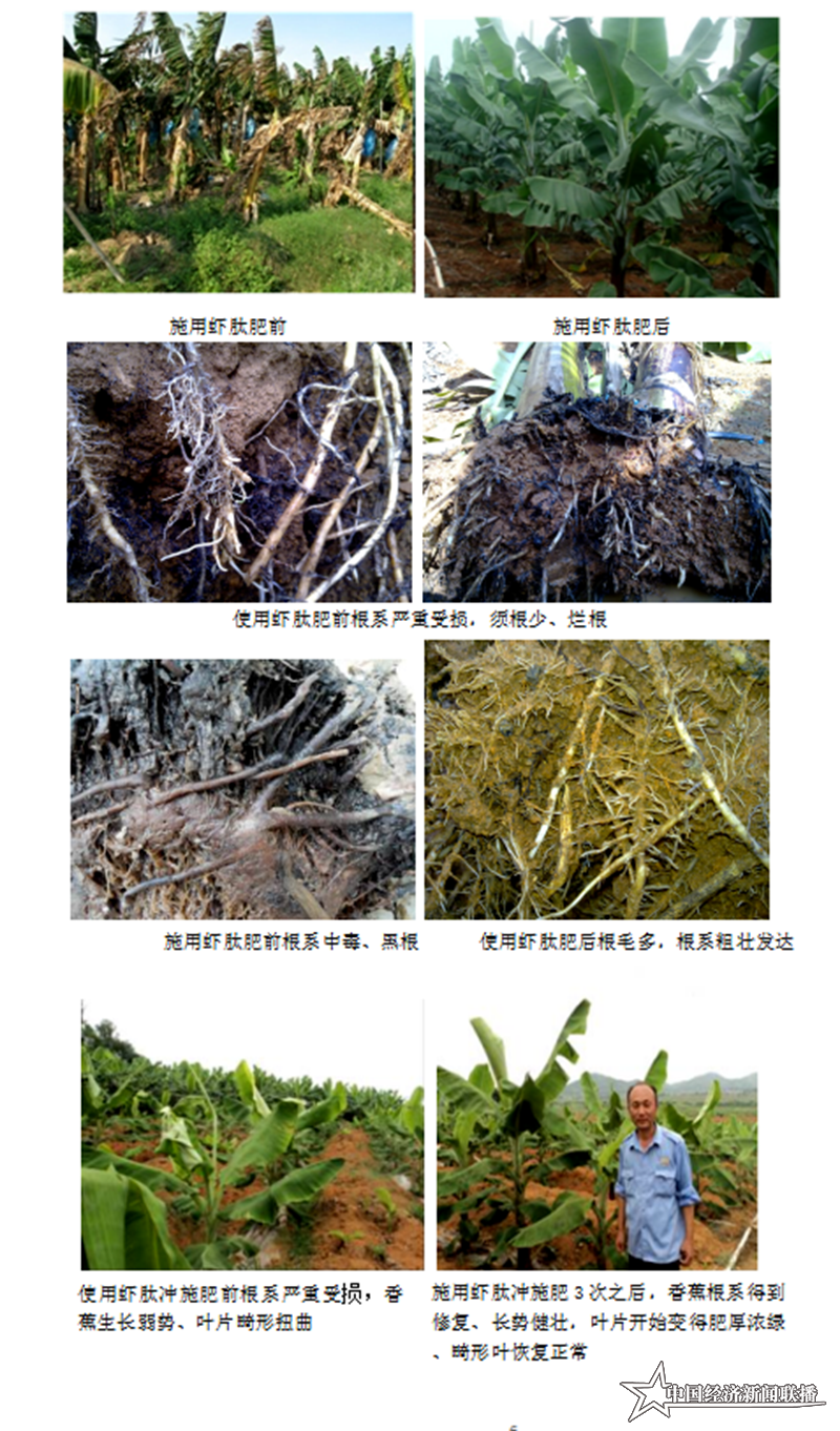 詹少波說,在2012-2013年期間,由廣東海洋大學與湛江博泰公司共同組織蝦肽氨基酸系列肥料在湛江市徐聞現(xiàn)代化農(nóng)業(yè)公司的香蕉基地對其香蕉枯萎病的應用試驗,效果非常顯著。當時發(fā)病較早的植株不能抽蕾,病株抽蕾后蕉果發(fā)育不全,大部分病株凋萎倒垂,通過博泰公司技術(shù)指導,選用抗病的香蕉品種,施用蝦肽氨基酸系列肥提高香蕉的抗病蟲害的能力,使香蕉生長旺盛,再配合施用蝦肽肥保根防病栽培技術(shù)對香蕉根系根結(jié)線蟲有非常好的防治效果,使根系的生長好、根壯、須根多。香蕉生長好,長勢齊整,蕉葉厚綠,發(fā)病少,且香蕉枯萎病病情指數(shù)較低,病株仍然可以抽出正常蕉果,產(chǎn)量有了很大提高。